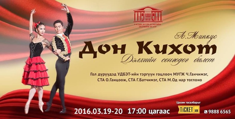 УДБЭТ-н тайзнаа 1971 оноос хойш 45 жилийн турш тавигдаж байгаа Дон Кихот балет нь эх зохиолын ердөө нэг л хэсэг буюу Китри, Базиль хоёрын хайр дурлалыг хэрхэн аварч байгаа хөгжилтэй түүхийг Китригийн аав, гуанзны эзэн Лоренцо, Китритэй гэрлэнэ гэж бат итгэсэн баян тайж Гамаш, мөн Дон Кихотын үнэнч дагуул, зэвсэг агсагч Санчо Панса нарын дүрээр илэрхийлдэг.