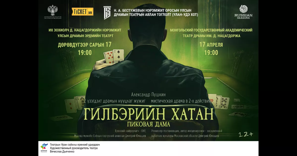 Уран бүтээлч, зохион байгуулагчдаас тоглолтууд цуцлагдсан гэсэн мэдээлэл албан ёсоор ирээгүй бөгөөд тоглолтын шинэ тов гарахад Та байгаа тасалбараараа үзэх боломжтой. Хэрэв Та тасалбараа буцаахыг ...